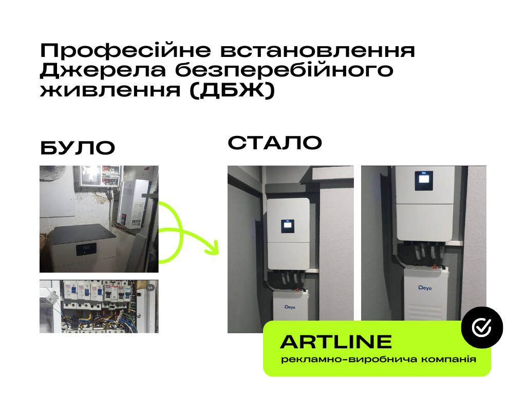 Професійне підключення та обслуговування батарейних станцій, генераторів, інверторних систем.